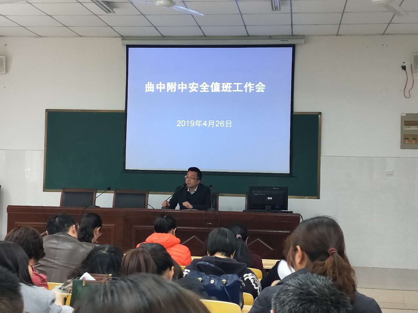 曲中附中召开安全值班工作会议 来源: 发布时间:2022-05-31 12:29:27 浏览次数: 次 【字体:小 大】 4月26日下午,曲中附中在和达楼一楼未来教室召开学校新一轮安全值班工作会议,学校安全工作分管副校长、安保处主任及全体值班教师参加会议。会上,解存才主任对本学期新一轮安全值班工作进行全面部署,详细解读了值班流程及注意事项。随后副校长王鹏对学校值班工作提出以下要求:一是思想重视到位,安全工作是学校首要工作,全体值班人员要牢固树立责任重于泰山的思想,切实做到时时警惕防范;二是值班巡查到位,严格值班要求,做好值班工作,杜绝空岗;三是加强考核到位,倡导谁的岗位谁负责,消除各种安全隐患和苗头。 分享到: 【打印正文】