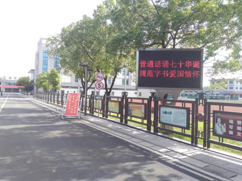 在班级的黑板报上,老师和孩子们精心布置了以“普通话诵七十华诞,规范字书爱国情怀”为专题的版块,营造学习氛围,形成师生共推普的良好环境。