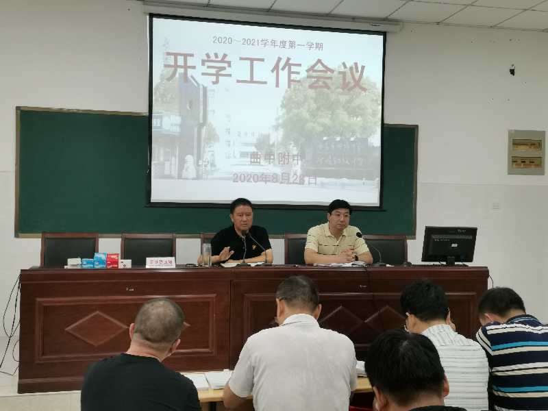 新学期,新起点,新目标,新希望。8月28日上午,曲中附中在和达楼未来教室召开2020——2021年度第一学期开学工作会议,全体教职工出席会议。