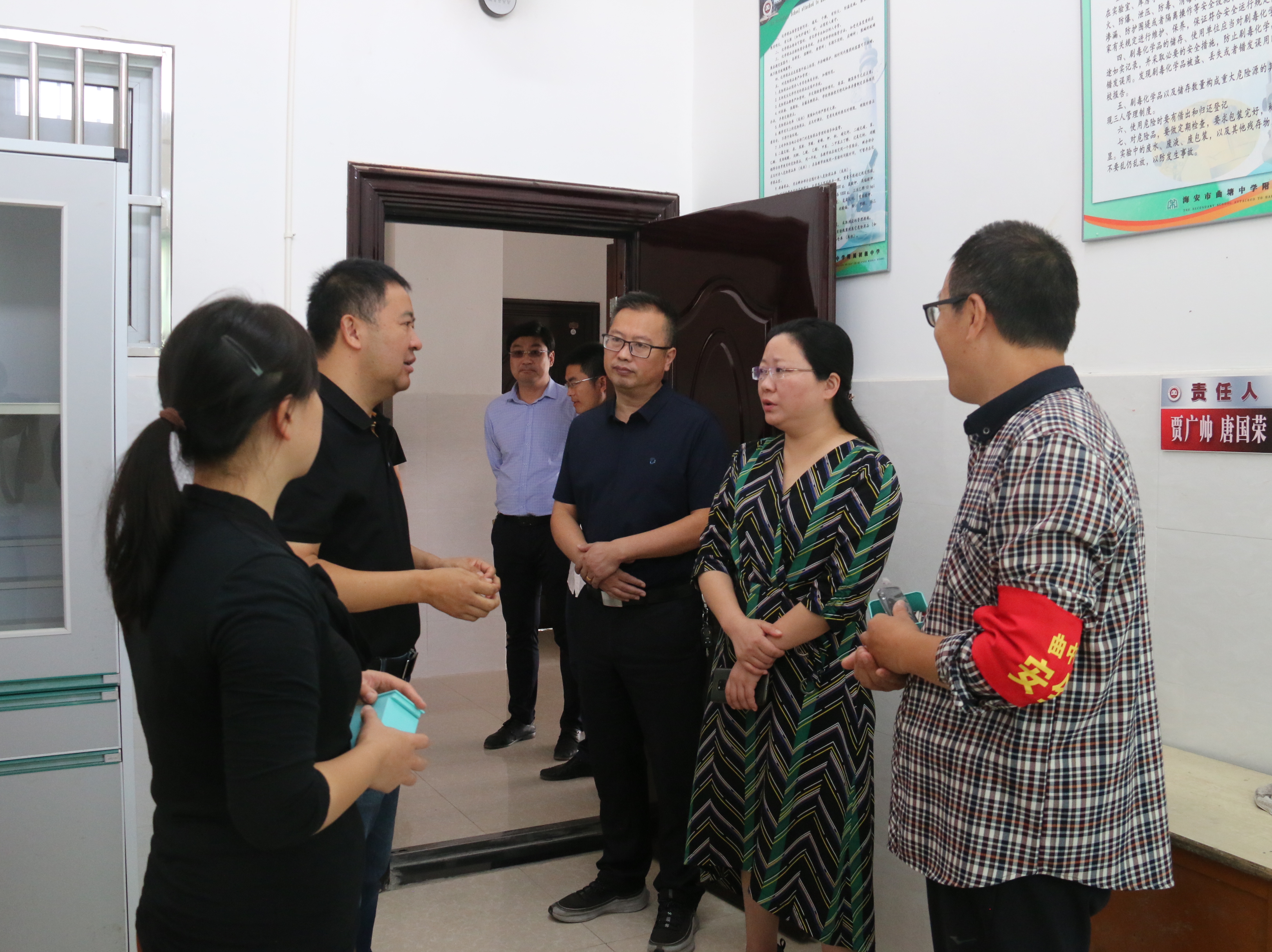 9月30日,在中秋、国庆两节即将到来之际,海安市委教育工委书记、教体局党组书记、局长章晓丽带领教体局有关科室负责同志,在曲塘镇教管办主任陈建军的陪同下,到曲中附中开展节前安全检查。