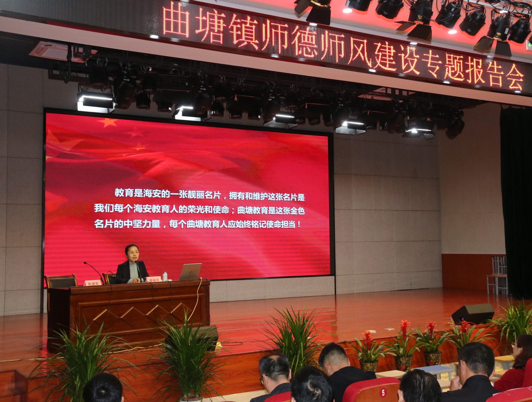 为大力弘扬教育正能量,树好教师新形象,11月21日上午,海安市纪委监委派驻教体局纪监组组长、市教育纪工委书记秦丽平在曲中附中图书馆五楼报告厅,为全体教职工做了题为《正风肃纪知敬畏 立德树人守规矩》的专题报告。