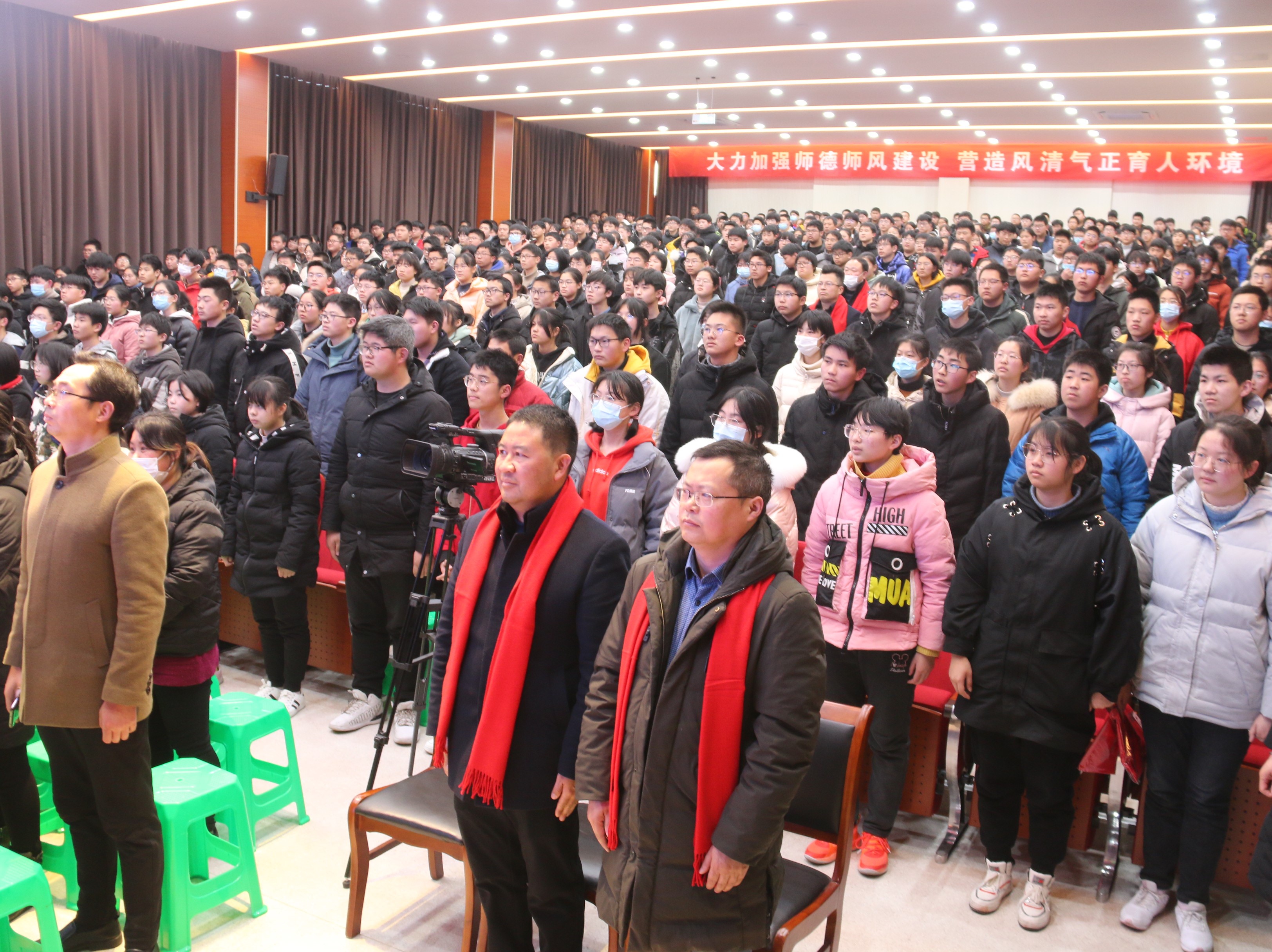 活动最后,全体教师、家长代表和初三学生代表上台,在横幅上签字,显示了昂扬向上和团结一致的信念!