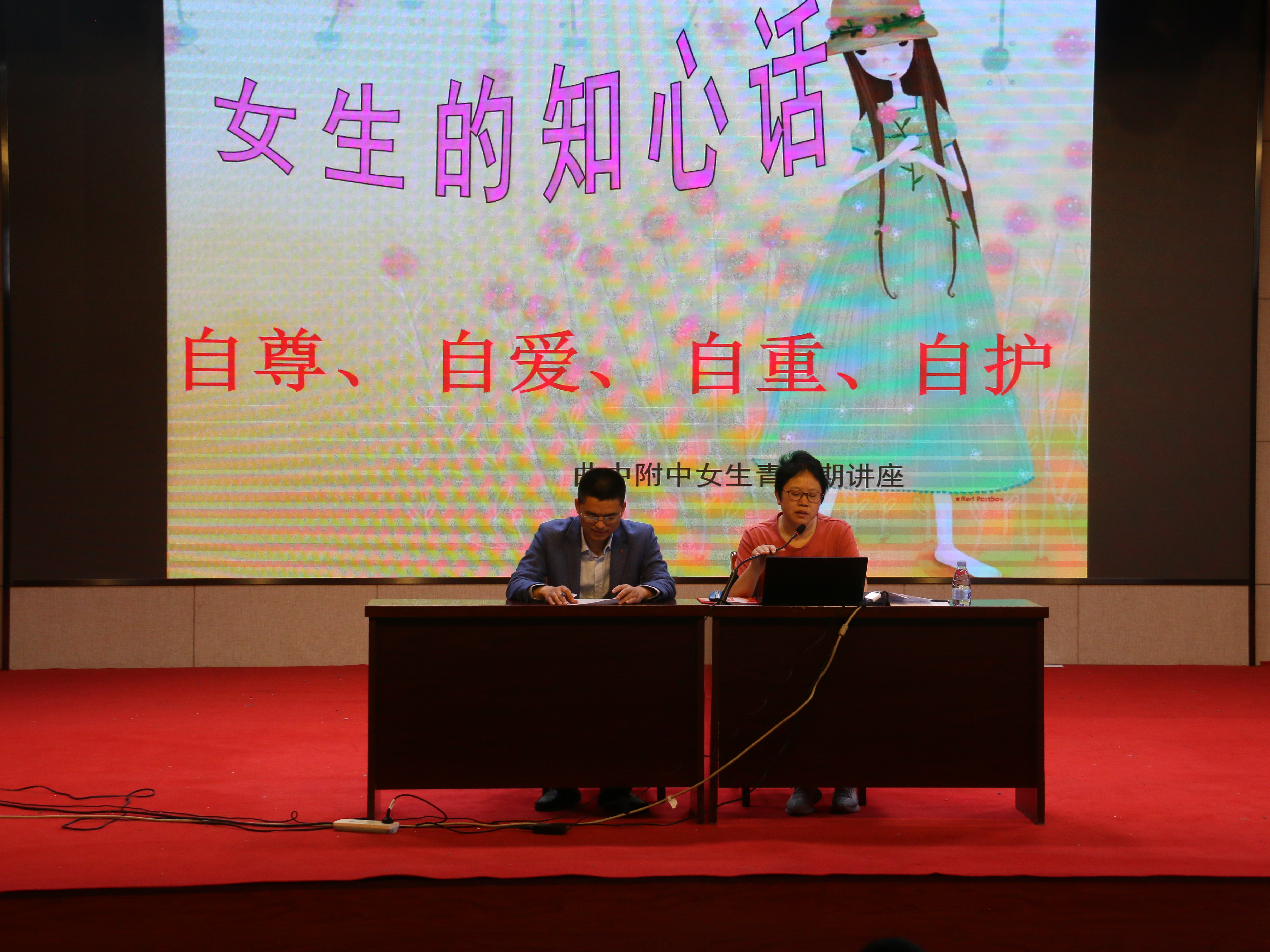 谢晓燕主席分别从青春期定义、青春期的变化、与异性的交往的策略、如何进行自我保护等方面进行了讲解,她要求女生做到举止端庄得体;理智谢绝异性的爱慕和追求;拒绝任何金钱物质的诱惑;学会分辨学生适宜和不适宜的场所等。