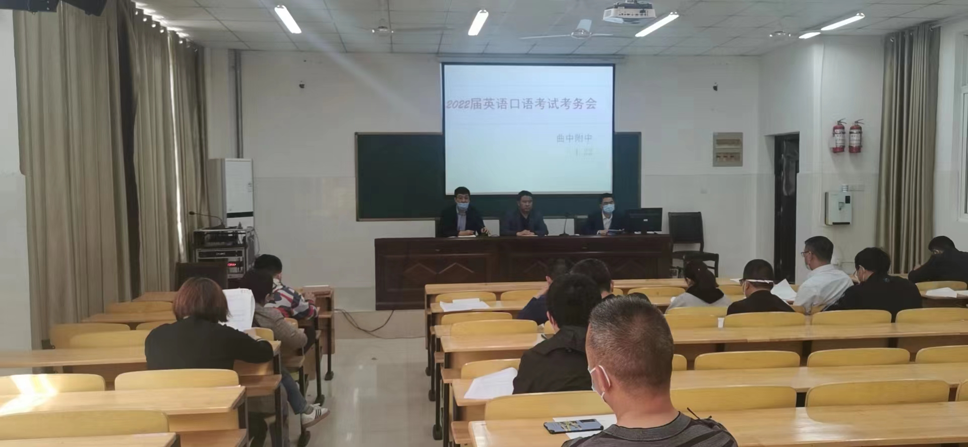 为组织好本次测试,学校成立了英语口语测试领导小组,制定了考试工作预案和应急预案。4月22日,全校召开了考务工作会议,对人员分工、测试地点和测试流程等做了精心安排。各班班主任对所有考生明确了参考批次和时间段,并进行了疫情防控专题教育和考风考纪专题教育。
